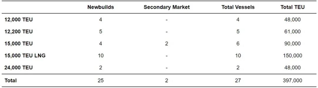 據(jù)長期跟蹤報道,自去年12月以來,塞斯潘已經(jīng)下單25艘集裝箱船,并于本周買入2艘15,000TEU集裝箱船。換句話說,塞斯潘新增船舶27艘,總計39.7萬TEU。如果考慮這批新增船舶的話,在塞斯潘控制的船隊中,其核心船型10,000-15,000TEU集裝箱船將增長47%,合計25艘船。