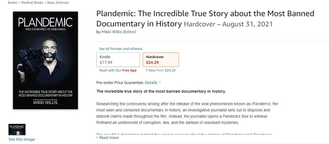 現(xiàn)在,米琪·另一個名字是威利斯《Plandemic》盡管亞馬遜因涉嫌傳播新冠肺炎而受到廣泛批評,但他的書籍被列入醫(yī)學(xué)書籍中的基礎(chǔ)科學(xué)類別。