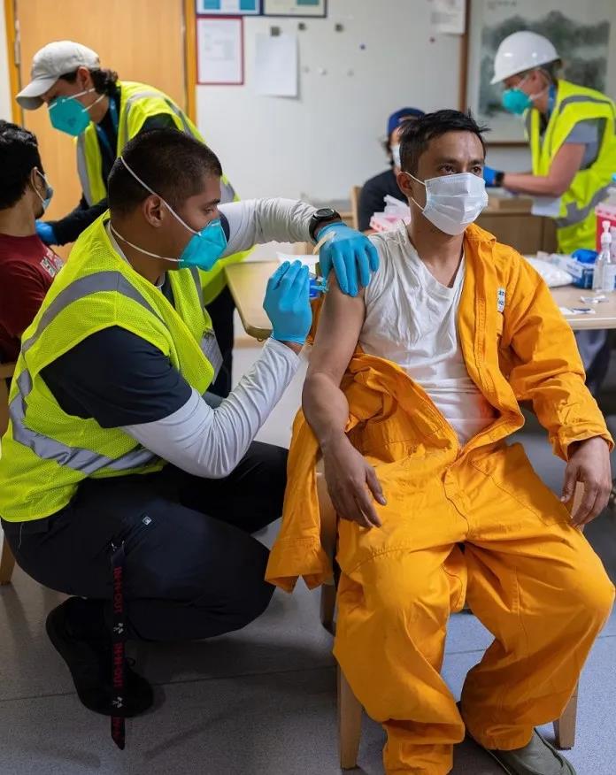 作為長灘港、長灘衛(wèi)生與公共服務(wù)部、國家警衛(wèi)隊(duì)持續(xù)合作的一部分,抵達(dá)長灘港及附近洛杉磯港的國際船員正在免費(fèi)接受COVID-19 疫苗接種。