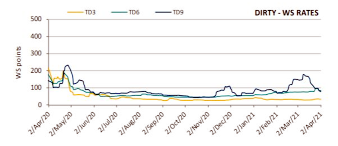 Iliopoulos表示: 這是否意味著市場已經(jīng)觸底反彈,預(yù)計將開始好轉(zhuǎn)?蘇伊士運(yùn)河堵塞無疑將短期支撐一些油輪的運(yùn)價。預(yù)計到2021年下半年,隨著石油產(chǎn)品庫存的減少和煉油廠運(yùn)營率的提高,石油運(yùn)輸市場前景將從根本上改善。