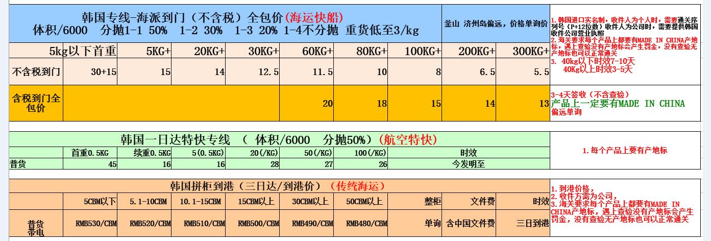 韓國海運公司,還過的海運運輸價格如下,可以韓國門到門包清關(guān)配送服務,需要提供以下資料