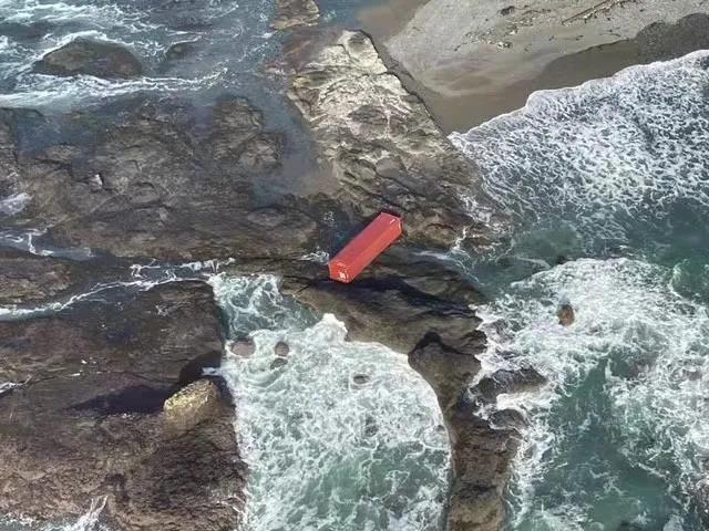 海警說,該集裝箱有被沖刷至海灘,因為這106個集裝箱中有兩個裝有危險化學(xué)品,因此建議附近區(qū)域的船員、船只和公眾不要打開或移動集裝箱。